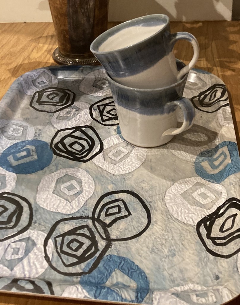 Här kan ni välja bland handgjorda mönster och ornament som har utvecklats och tryckts på textila material och på serveringsbrickor!